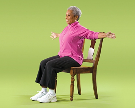 - به آرامی بازوهای خود را به عقب هل بدهید، در حالی که به شانه خود فشار می آورید. چنانچه کوچکترین دردی داشتید تمرین را متوقف کنید.