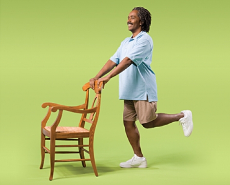 - پشت یک صندلی محکم بایستید و تعادل خود را حفظ کنید.