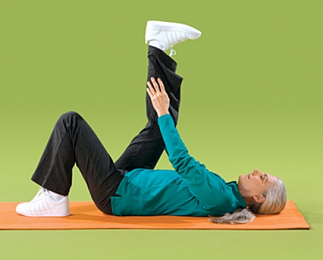 - روی یک سطح صاف بر روی زمین دراز بکشید. پای چپ خود را خم کنید به شکلی که کف پای چپ شما رو زمین باشد.